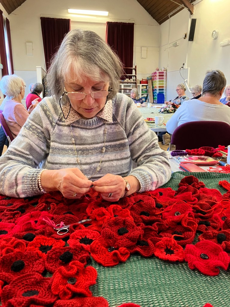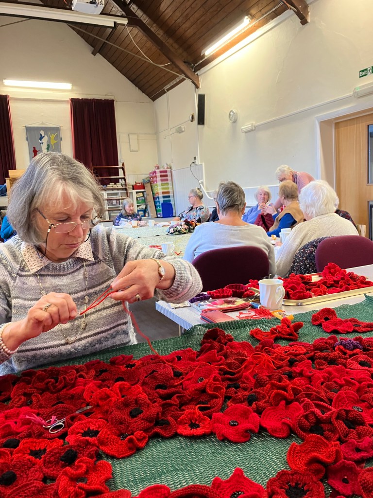 Some photos of Remembrance Poppies cascade made by members of our ‘Coffee and Company’ group at Swanmore Methodist Church. My wife Jill Letts runs the group with the lady in the photos sewing (Rosemarie Parker). All the poppies have been knitted by the ladies in the group. We think there are about 250 poppies in all. They are now in the entrance to the Methodist Church.