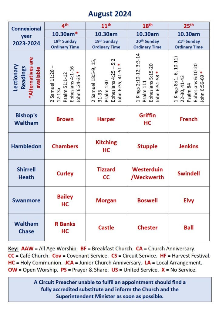 June 4, 2024Oculus ReparoLeave a Comment on Circuit Preaching Plan Second Quadrimester of 2024 Circuit Preaching Plan Second Quadrimester of 2024 The Meon Valley Methodist Circuit preaching plan for May to August 2024 is available from the ‘When‘ section of this Website or via this link Share this: Click to share on X (Opens in new window) X Click to share on Facebook (Opens in new window) Facebook Like Loading...